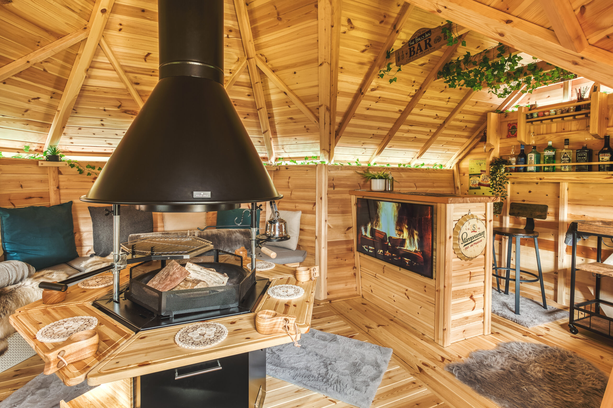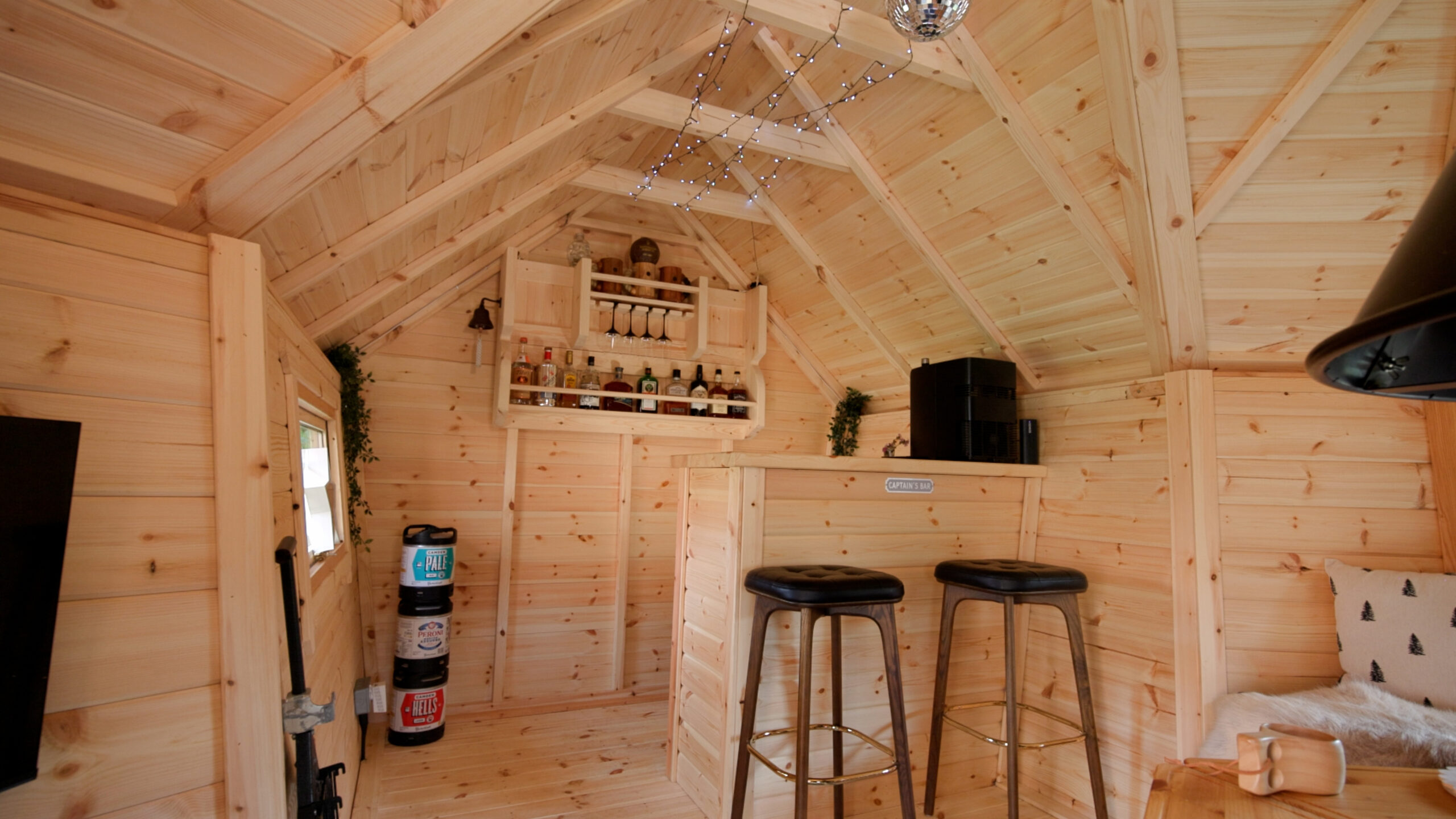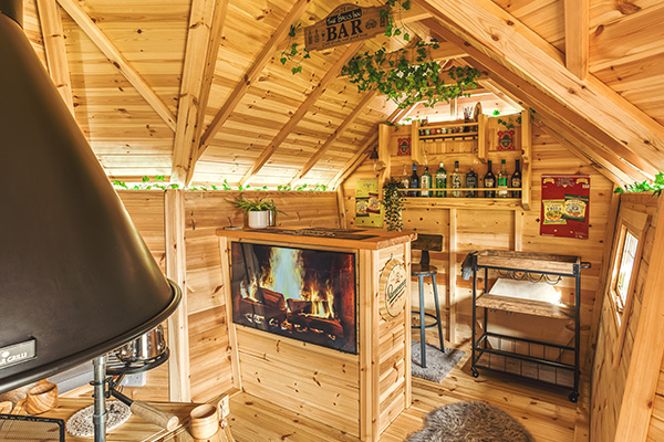 Our Arctic Bar is becoming our most popular garden addition. With over 13 square meters of space you will effortlessly seat 9 people on the benches and others at the Arctic Cabins Garden Bar, creating a cosy, intimate, fun environment. Our cabins not only look great but they are practical too; warm and snug in the winter and they offer welcome shade in the summer. And they aren’t just for barbecuing with specially adaptable benches as standard they are great for sleepovers too. Therefore you can create a teenage den, a unique guest room or a very impressive ‘man cave.’ We offer a no quibble 10 year manufacturers guarantee giving you complete piece of mind.Click To View Our 360 Video of The Arctic Bar