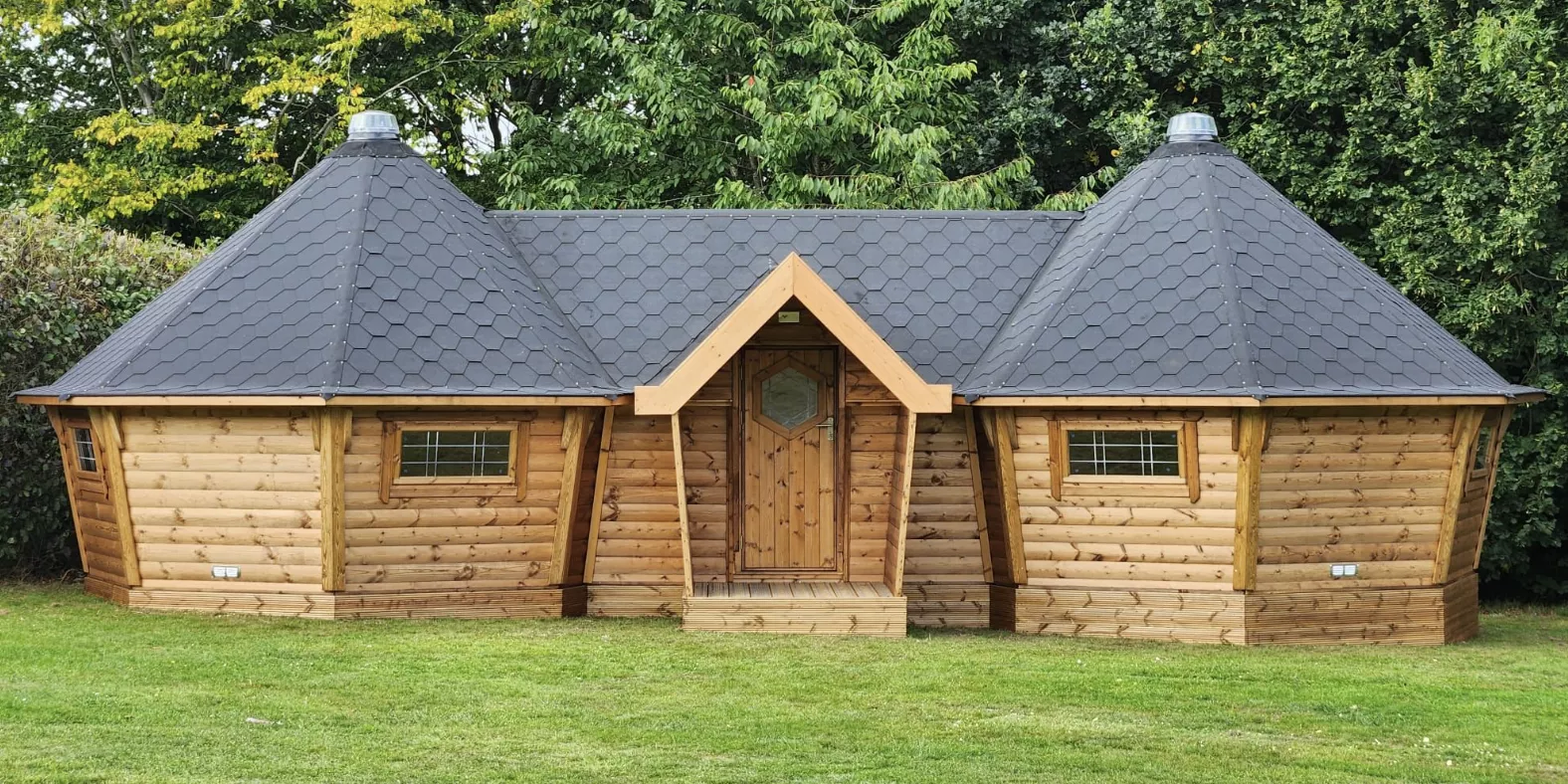 By joining two log cabins together, you can create space to seat between 21-42 adults, large enough for the whole family to come together and enjoy, or for hosting as many friends as you please.